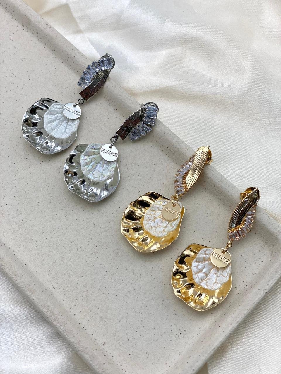Brinco inspirado nas conchas do mar, com detalhe em madrepérola que reflete a luz de forma única. Um acessório elegante e orgânico, perfeito para compor looks sofisticados, leves e atemporais.