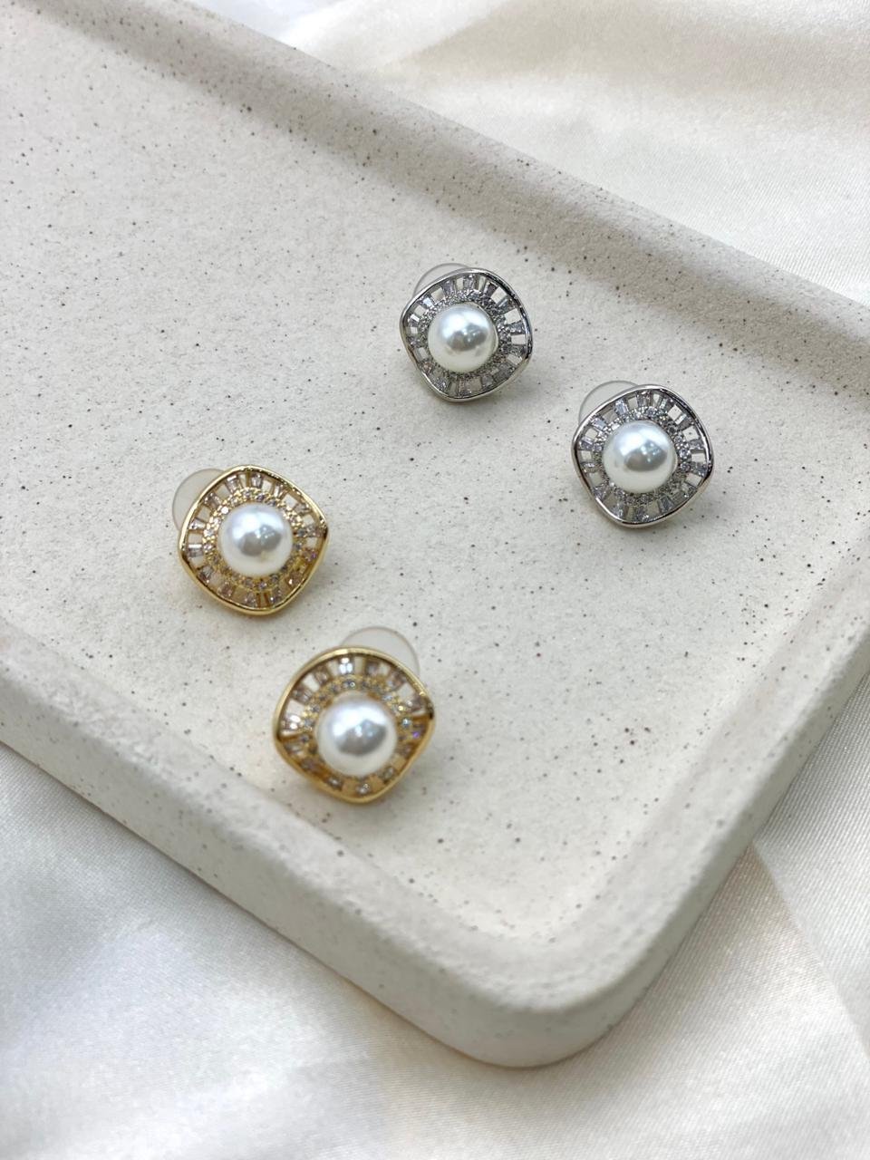 Brinco delicado com pérola central, rodeada por zircônias cravejadas em corte baguete, formando um design elegante e atemporal. Uma peça sofisticada que combina perfeitamente com produções clássicas ou modernas, ideal para ocasiões especiais ou para dar um toque refinado ao dia a dia.