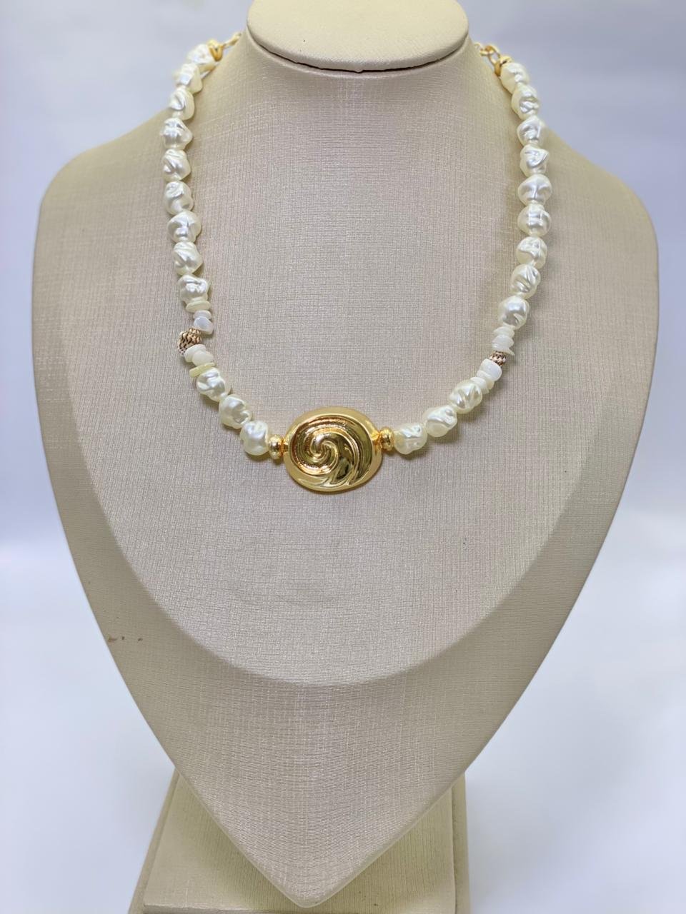 Colar de pérolas com pingente de caracol